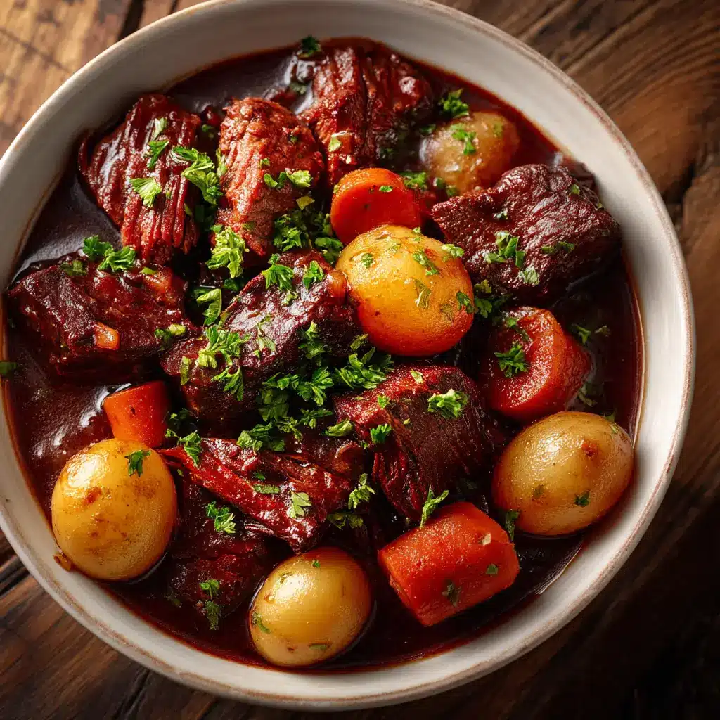 This isn’t just a beef stew; it’s an experience. The magic lies in the slow-simmering process, which allows the flavors of the beef, vegetables, and robust red wine to meld together into something truly spectacular. Whether you’re planning a cozy Sunday dinner or looking to impress guests, this recipe is a guaranteed showstopper.