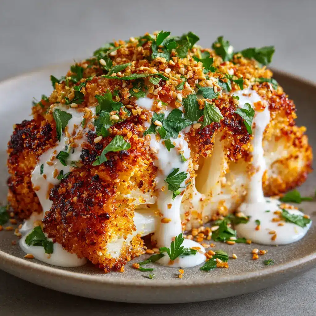 Crispy Baked Cauliflower Steaks with Garlic Cream Drizzle