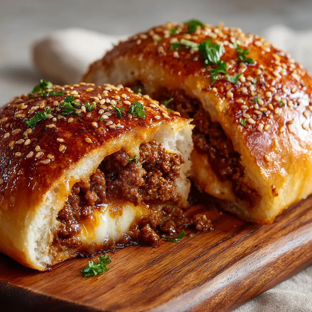 These Ground beef stuffed rolls deliver an unparalleled comfort food experience right to your kitchen counter. Picture a golden-brown baked bread roll torn in half, revealing a steaming hot, savory filling of crumbled browned ground beef mixed with gooey, stringy melted mozzarella and cheddar cheese. Every single bite offers a masterclass in contrasting textures and rich, savory flavors.