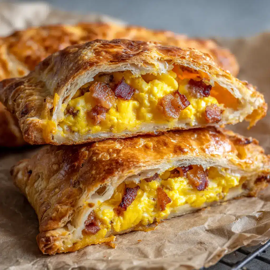 These Homemade Breakfast Hot Pockets are packed with fluffy scrambled eggs, crispy bacon, and gooey cheddar cheese inside a flaky, golden puff pastry crust.