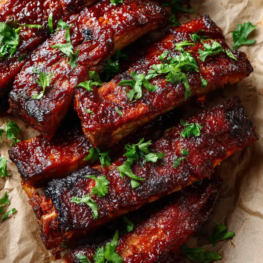 - While the ribs finish caramelizing, take your fresh green parsley and finely chop the leaves. Once the ribs are out of the oven and resting, lightly scatter the chopped fresh green parsley across the glossy surface of the ribs before serving.