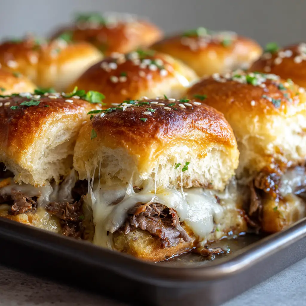 There is nothing quite like the savory, melt-in-your-mouth perfection of homemade Philly Cheesesteak Sliders. Picture a dark metal baking pan filled to the brim with densely packed, golden-brown sweet slider buns. When you pull them apart, thick, gooey melted provolone cheese stretches and oozes beautifully from the center.