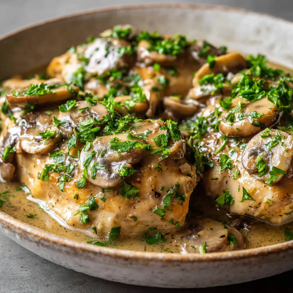 Want to show off your culinary masterpiece on social media? To capture the perfect close-up shot of this slow cooker mushroom chicken, we recommend serving it in a shallow rustic ceramic bowl. Ensure your dining room or kitchen has a neutral background and utilize soft natural daylight to avoid harsh shadows.