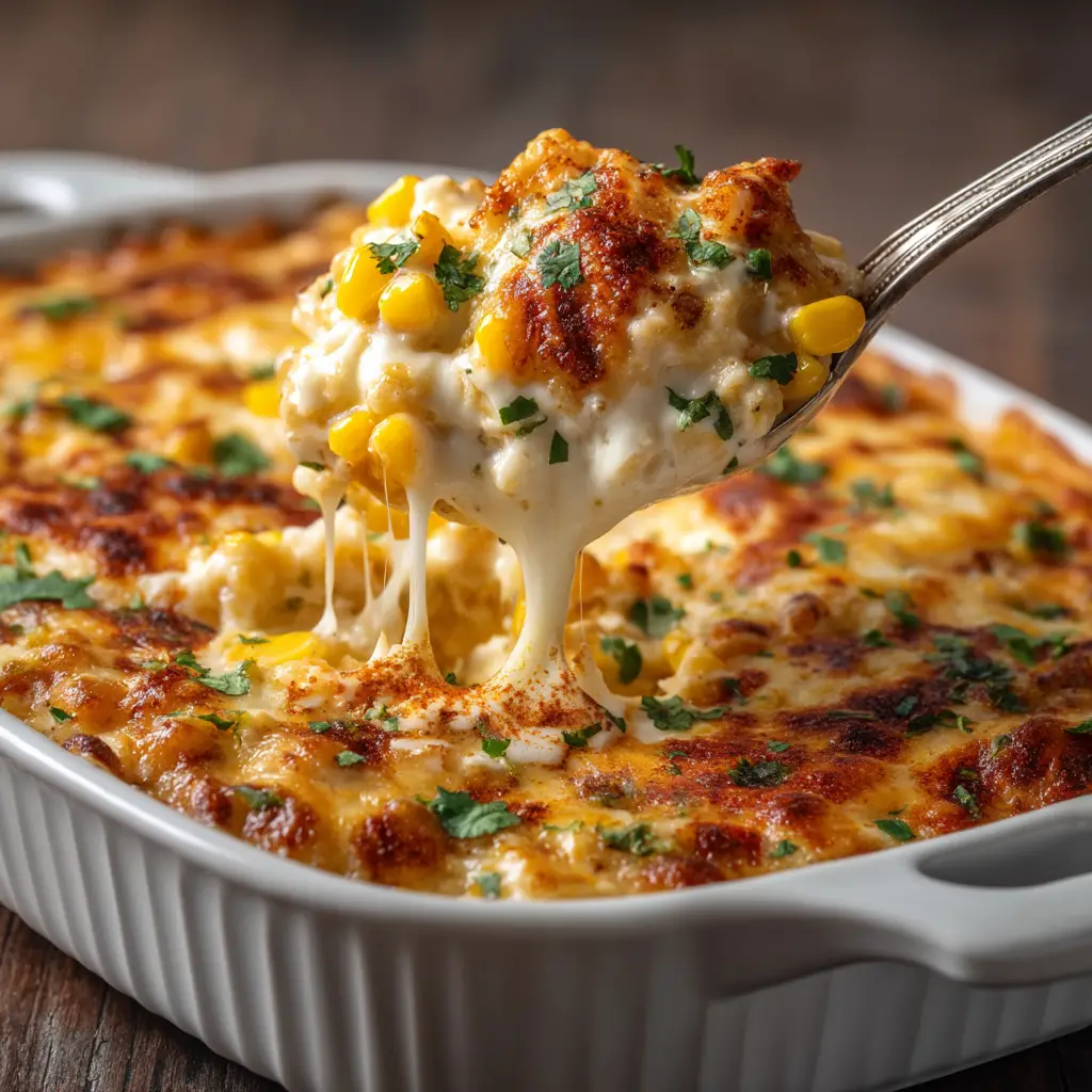 This isn’t just another chicken casserole. It’s a flavor explosion, combining tender shredded chicken with sweet corn in a creamy sauce made from cream cheese, sour cream, and a signature blend of spices. Topped with crumbled cotija cheese and fresh cilantro, every bite is a perfect balance of savory, tangy, and fresh. It’s the ultimate comfort food with a bold, modern twist.