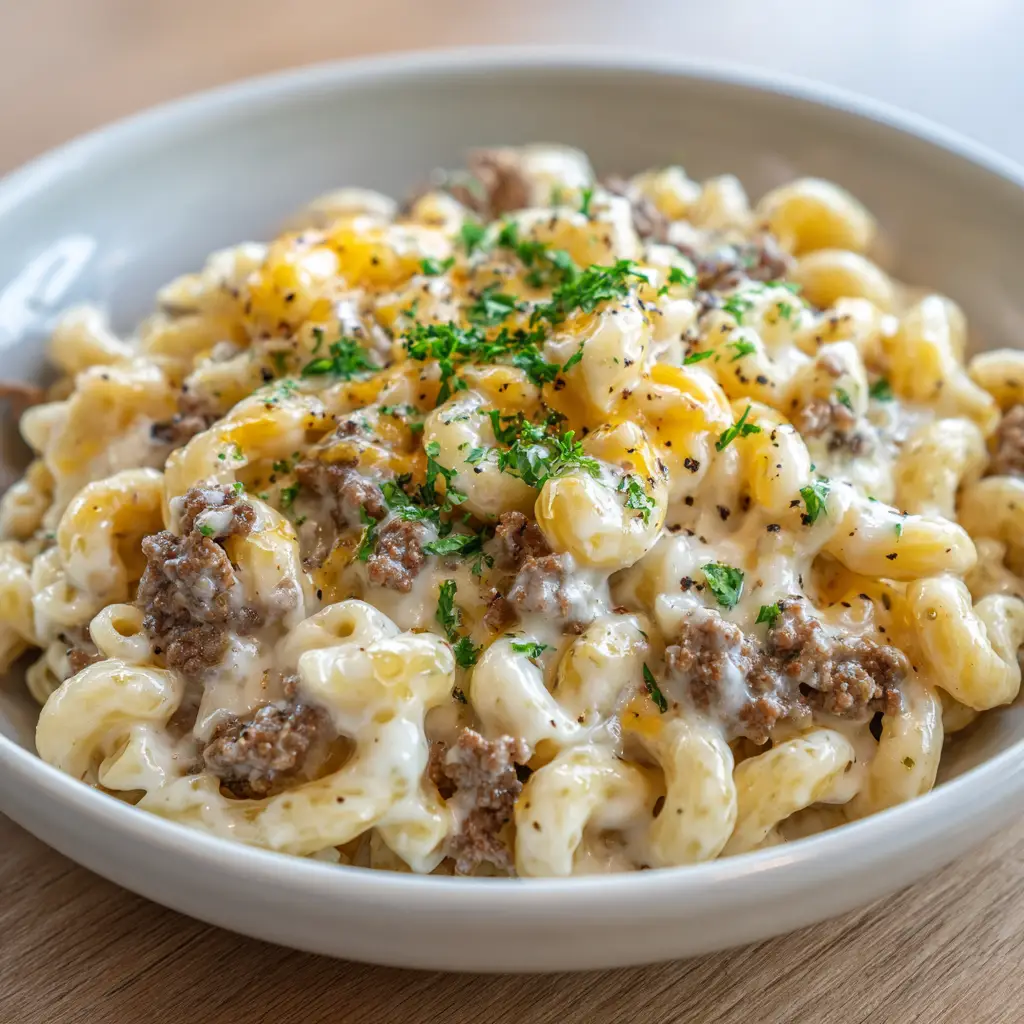 The Ultimate White Cheddar Mac and Cheese with Ground Beef